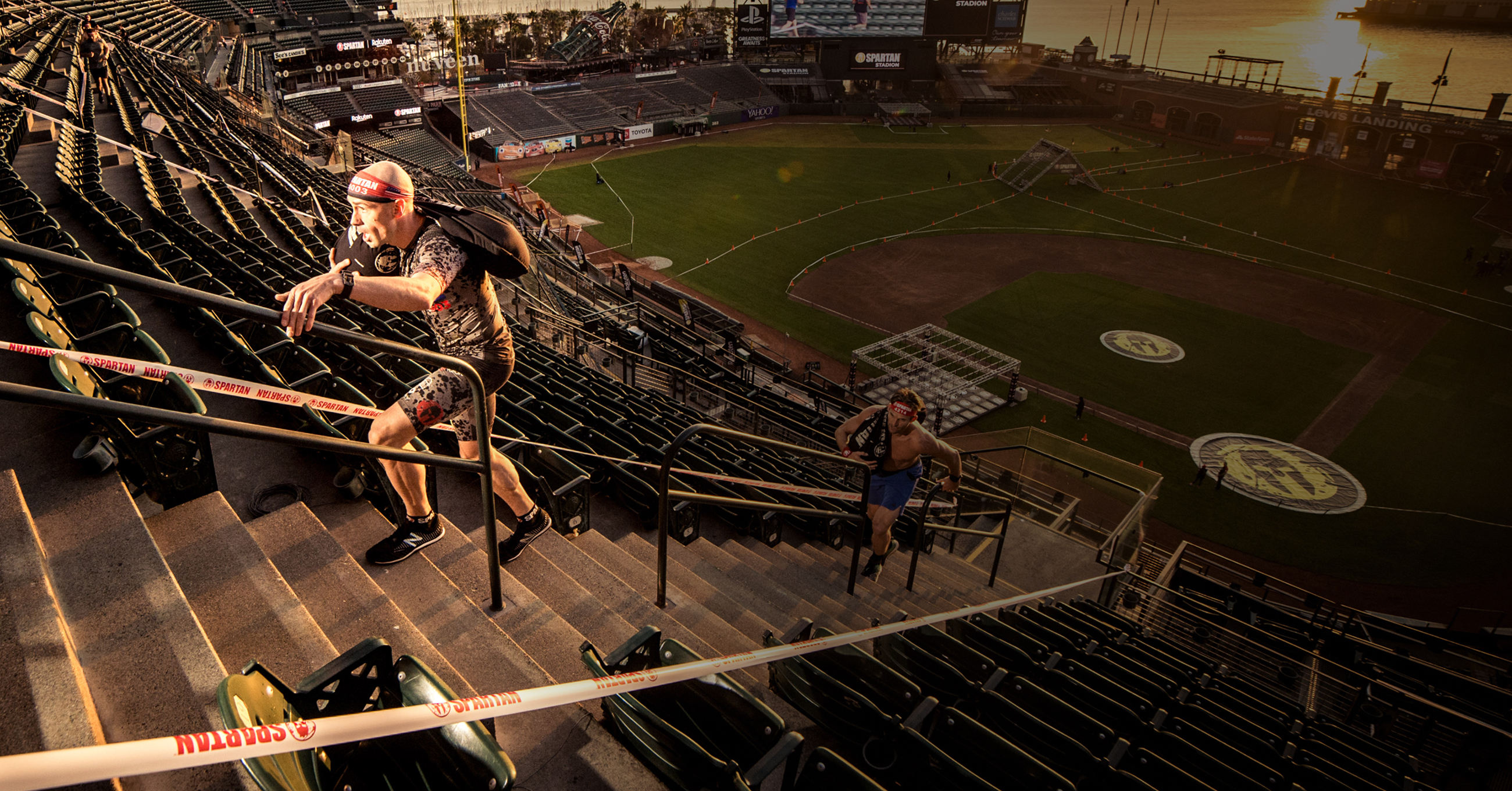 Stadion is a 5K obstacle course packed into legendary arenas. You’ll climb stairs, scale walls, be challenged by various functional fitness obstacles, conquer monkey bars, and aim true with the spear throw — all at race pace.
